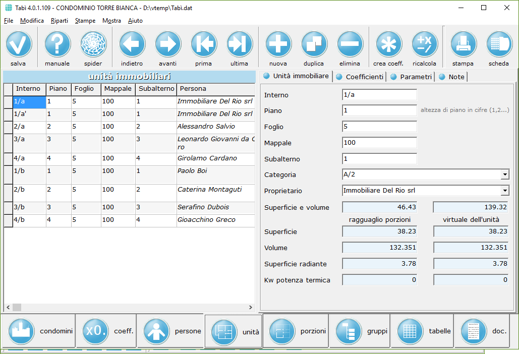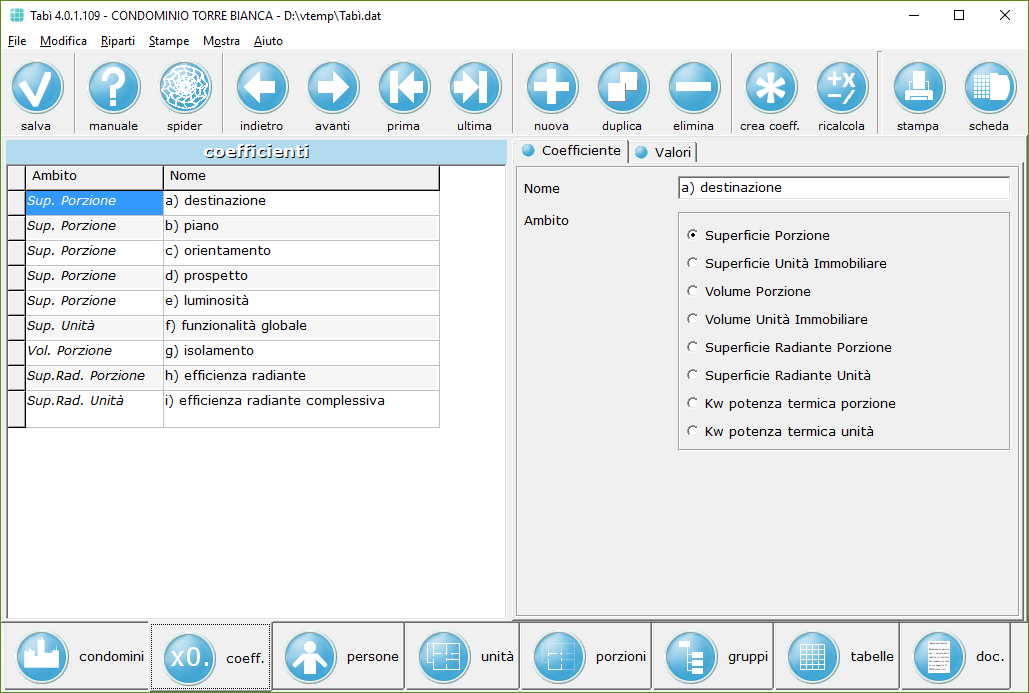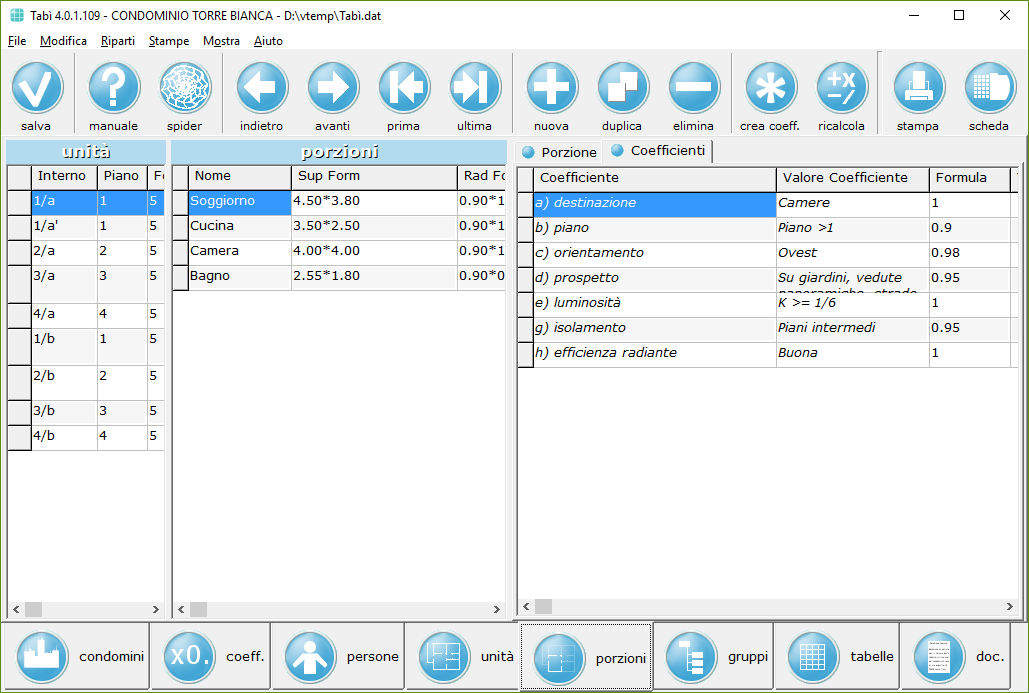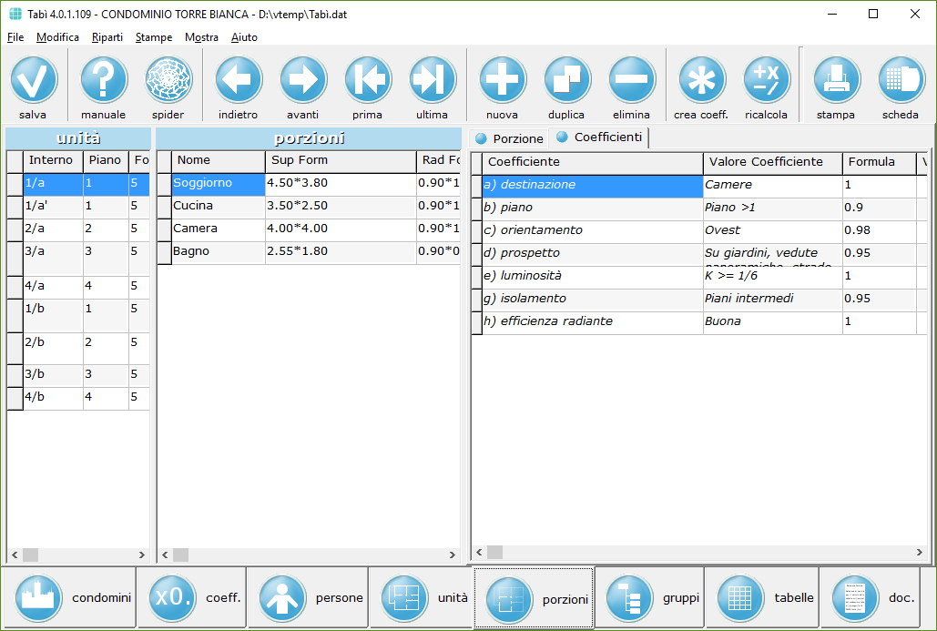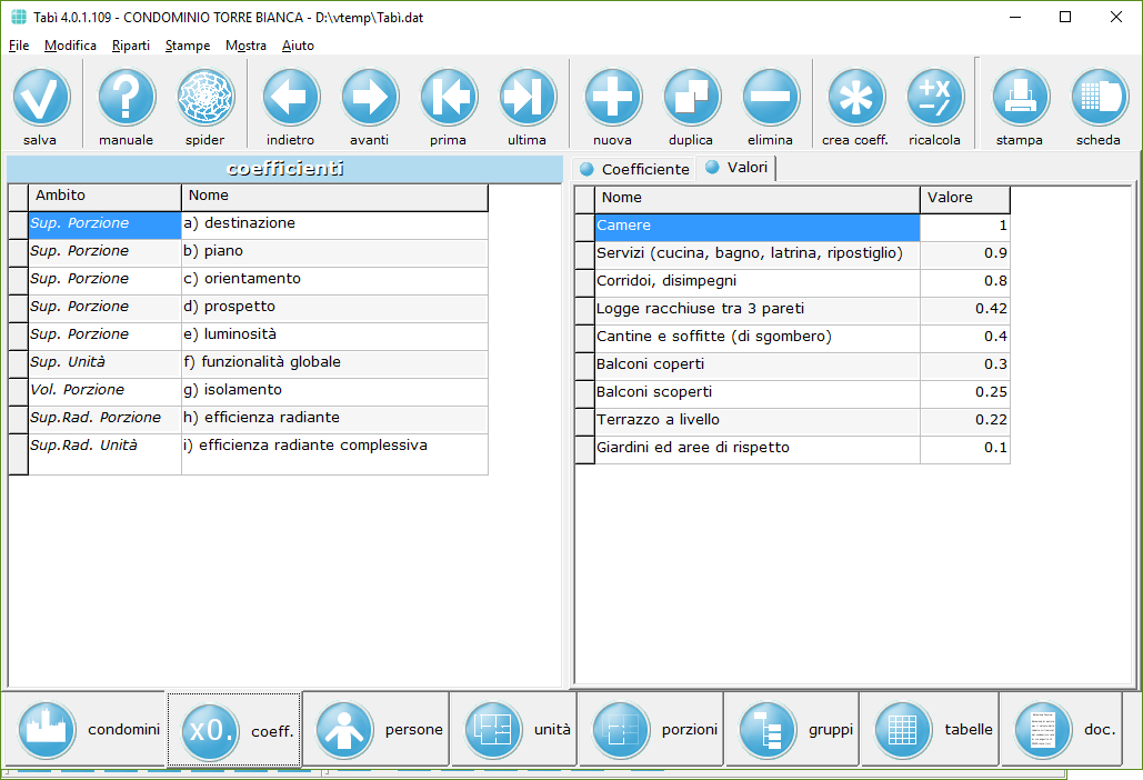 Ogni porzione ha i propri coefficienti, che possono essere presi dalla tabella dei coefficienti del condominio o impostati manualmente: