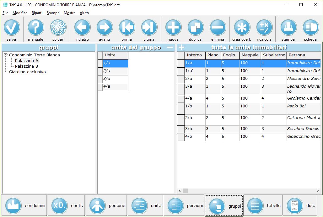 Puoi raggruppare le unità immobiliari come desideri, per calcolare i millesimi anche di singoli gruppi e/o sottogruppi: