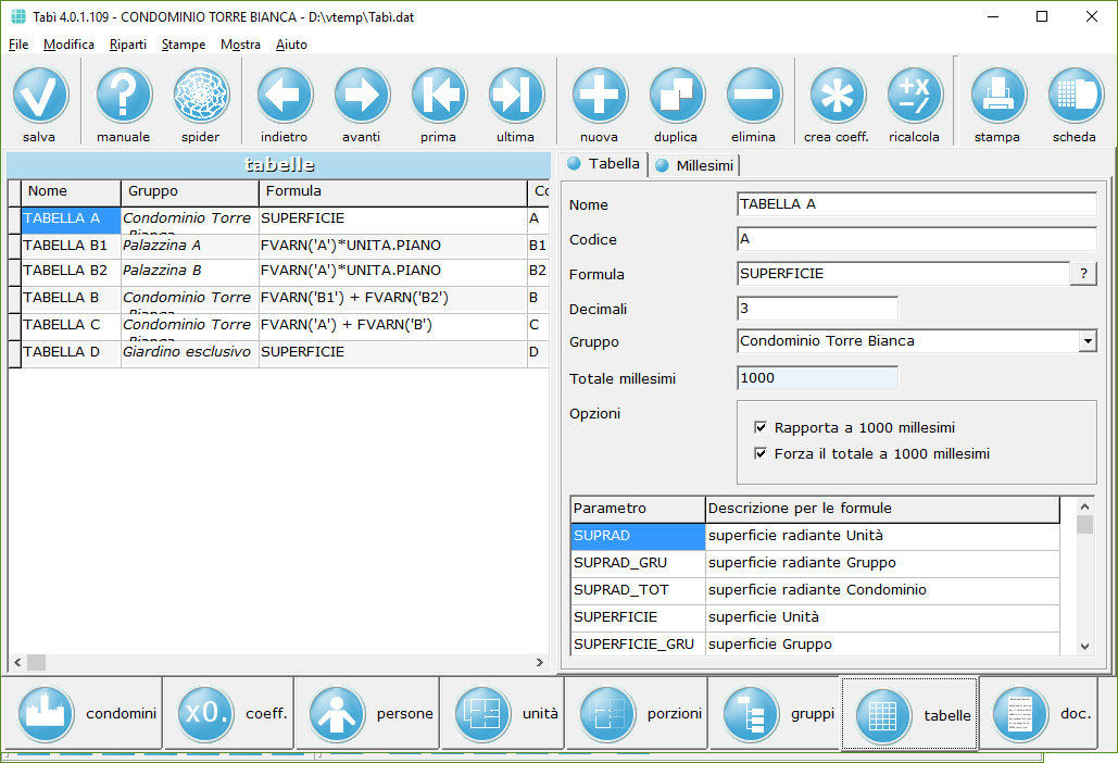 Il calcolo delle tabelle millesimali č completamente configurabile, con formule dalle più semplici alle più complesse;